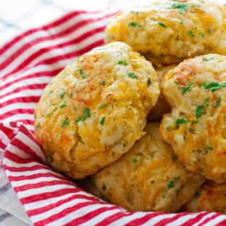 Cheddar Bay Biscuits made with buttermilk and cheddar cheese. Theses biscuits are even better than Red Lobsters version. Brushed with garlic butter when they’re fresh out of the oven, they are just so irresistible! And you don’t even have to go to Red Lobster for them anymore!