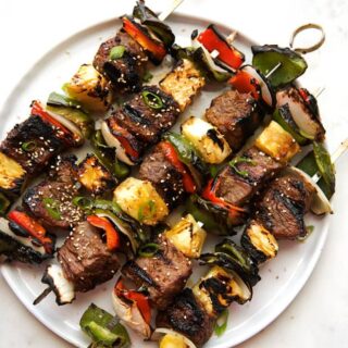 It’s all right here in this simple recipe for Korean beef kabobs. And as if Korean beef aka bulgogi wasn’t good enough (more like filling enough) we’re adding onions, peppers, and pineapple and putting it all on a skewer because friends, food that’s put onto a skewer and grilled make me a little weak in the knees. These beef kabobs healthy,tasty, and a complete meal. But but but since it’s on a skewer, you could certainly make it into an appetizer too at your next shindig. Trust me, you will be the talk of the town.