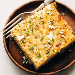 Let it all bake for 55-65 minutes and you’ve got an easy breezy meal that will feed a crowd. Finally top it with lots of crumbled queso fresco and fresh chopped cilantro right before serving.