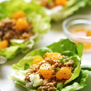 Easy to make, light and healthy orange chicken lettuce wraps! The ground chicken tastes just like a healthier version of orange chicken and being in lettuce wraps means it’s a low carb, high protein, and filling meal for lunch or dinner!