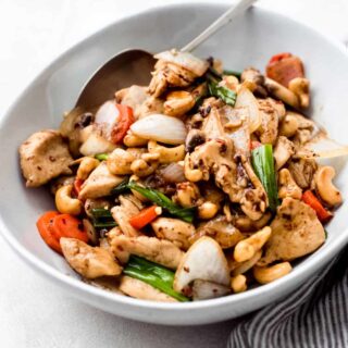 An easy and delicious Thai Cashew Chicken recipe that the whole family will love. Cashew chicken has tons of tender veggies, and lots of umami flavor and is downright addicting!