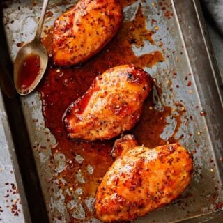 Baked firecracker chicken FTW. After all of the love you guys showed this recipe, I wanted to create something that was a little more weeknight friendly. Sure, those meatballs are great and taste wonderful over a bed of rice or with veggies on the side but sometimes I just wanna get this dinner on the table pronto and into my belly. And for those times baked firecracker chicken filets are probably more up our alley because there’s no meatball making required. It’s as simple as seasoning, searing, and baking.