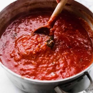 Learn how to make a homemade spicy arrabbiata sauce. This sauce starts with a few glugs of olive oil, freshly chopped garlic, and red pepper flakes to really kick up the flavor. If you’ve made my homemade pizza sauce, you’re going to love this arrabbiata sauce!