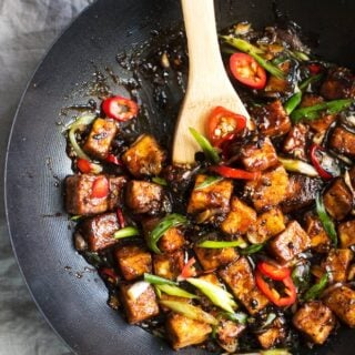 A quick and easy crispy black pepper tofu stir fry recipe. Pan-fried tofu tossed in a vegan friendly spicy black pepper sauce. Ready in minutes!