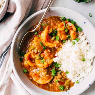 A New Orleans classic – shrimp etouffee! We’re making etouffee from scratch, and I’m even using my own cajun seasoning blend. Serve shrimp etouffee with rice, and it is the ultimate comfort food!