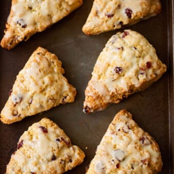 Cranberry orange scones. They were my favorite until I tossed in a handful of chopped pistachios and swapped the vanilla glaze for a more citrusy version. I’m never eating regular cranberry scones ever again. This is the way to go.
