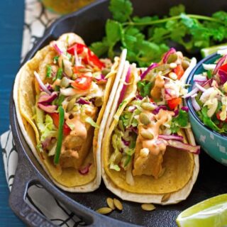 Crispy fish tacos in the summer time are a must! These crispy fish tacos are topped with fresh, crispy margarita slaw and roasted pepita seeds and are perfect for dinners on the patio. You’ll love my version of baja-style crispy fish tacos!
