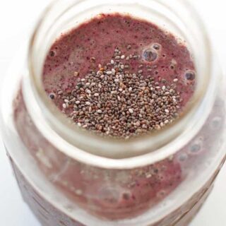 I added in a little chia seeds at the end because I often use this smoothie to replace a meal. The chia seeds help keep you a little fuller. Flaxseeds or flaxseed oil are other great options to make this glowing skin smoothie recipe even more filling!