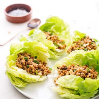 Full disclosure here, i’m not a huge fan of hoisin sauce so I kept it to a minimum in the recipe. I feel it’s one of those ingredients that kinda just takes over the dish and you really can’t taste much of anything else. If you do like hoisin sauce though, you can drizzle additional sauce straight onto each individual lettuce wrap. I top mine with some crushed peanuts and sesame seeds because I love the added texture.