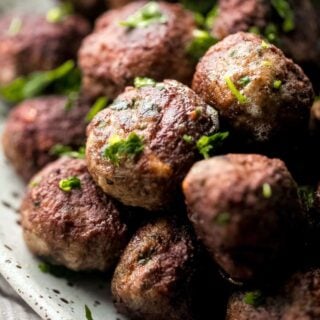 Learn how to make Greek Meatballs or Keftedes. These meatballs are scented with spices, loaded with grated onions and garlic and fresh parsley, so they’re flavorful and perfect to stuff inside pitas and top with tzatziki!