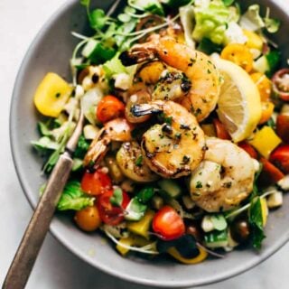 I know that not everyone is as crazy about shrimp or seafood in general as we might be, so friends we’ve tested this recipe with chicken too and it works out fabulously. See the kinds of things i’m willing to do to make sure you have a GREAT salad experience? I kid. In all honesty, you’re the one that did me a favor. So thank you!