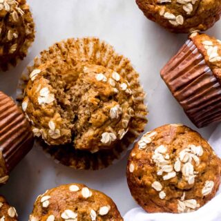 If you’re not a fan of brown sugar, you’ll be happy to know I tested the recipe with all maple syrup as well and it works beautifully here! I prefer the texture of the muffins with 1/2 brown sugar + 1/2 maple syrup, however, all of one sweetener will also work!
