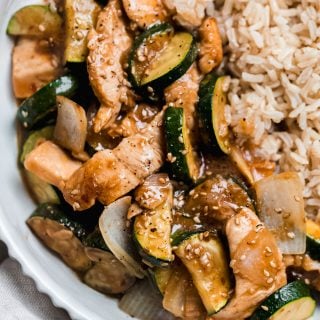 This Chicken zucchini stir fry is one of those meals that taste way better than they should. It’s easy because the same ingredients I use in the sauce are the ones that go into the marinade for the chicken. And it’s quick and healthy and flavorful enough to serve for weeknight dinner and to box up for desk lunches the next day! Plus the total time on this recipe is around 40 minutes – and that’s with 20 minutes of marination time.