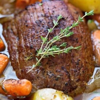 A simple pot roast with carrots and potatoes that’s perfect to serve for Sunday supper. The roast is tender and just falls apart!