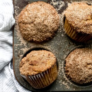 These are so good! 5/5 people in my home loved them. Next time, I will cut the cinnamon sugar topping by about 2/3. I had extra and a bunch fell off the tops of the muffins.