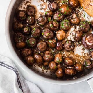 I’m confident that these sauteed garlic herb mushrooms will be a hit with any real mushroom lover. They’re great paired with chicken, salmon, and are begging to be devoured with homemade steak. I also happen to think they’d be a great addition to the holiday table! A little something different than your usual zucchini, green beans, brussels sprouts, potato, and butternut squash side dishes.