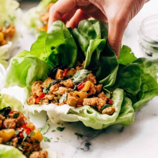 Everyone’s favorite Thai dish has been lightened up. These basil chicken lettuce wraps are packed with protein yet light on the waistline. The addition of pineapple makes them beautiful and fresh and perfect for spring lunches or dinners!