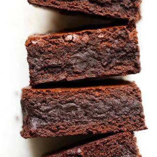 Crackly top espresso brownies, loaded with real espresso flavor. They’re sweet, slightly salty, and completely sophisticated. In fact, would you mind if I replaced my morning french pressed coffee with a brownie? Can you say, perfect?