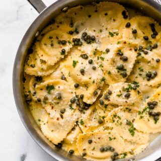 We’re taking a detour on the traditional chicken piccata and skipping right to the good stuff. If you like chicken piccata then surely you’re going to love my ravioli piccata too!