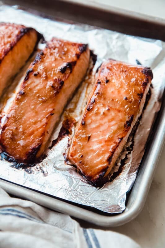 Broiled Miso Ginger Salmon (with Quick Sauteed Veggies!)
