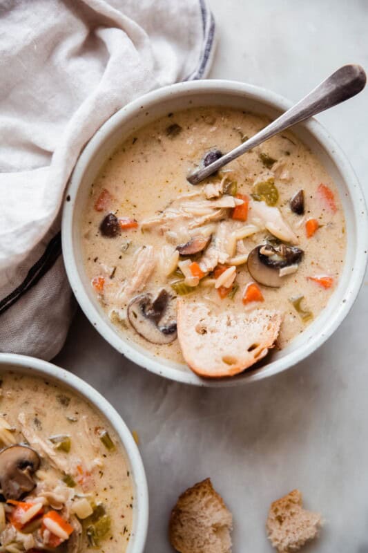 Creamy Chicken Mushroom Soup with Orzo Pasta