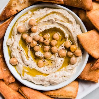The main difference is that this recipe employs a simple technique before we process it into a dip. And as a result, we are left with the smooth garbanzo bean dip that’s perfect for serving with pita chips for a movie night snack or over your shawarma bowl for dinner!