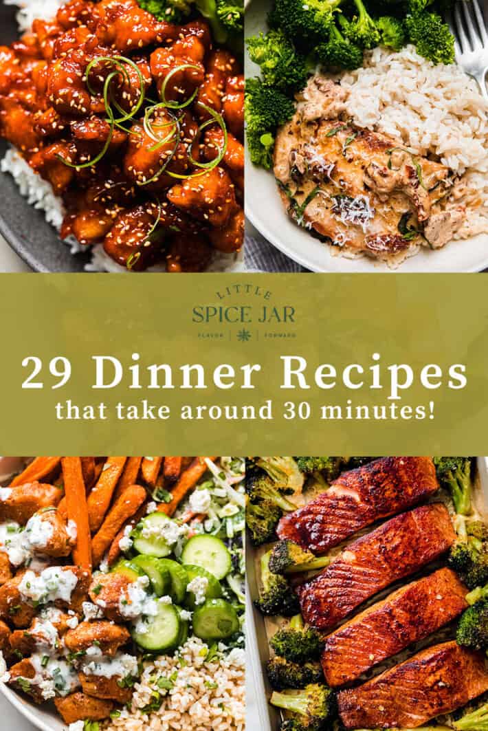 29 delicious Dinner Recipes that take around 30 minutes! These dishes are absolutely delicious and deserve to be on the regular weeknight easy recipes rotation.