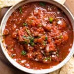 - 1 (28-ounce) fire roasted tomatoes drained for a chunkier salsa