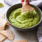Process until smooth and creamy. You might need to stop the food processor and scrape the sides. Taste and adjust with additional salt and lime juice as desired. To spice it up further, you can also add a bit of cayenne pepper or next time, leave some of the ribs/seeds of the jalapenos intact. Let sit for 15-20 minutes in the refrigerator if time allows, I prefer to let the flavors mingle a little before serving. Leftover dip should be covered and refrigerated for up to 3 days. I like to store it in these