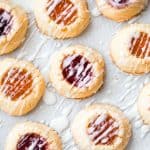 FILL: When the oven has preheated, remove the dough from the fridge or freezer. Using the same melon baller, fill each thumbprint with ¼ - ½ teaspoon of jam.