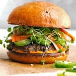 Keyword: banh mi, banh mi burger, banh mi burger patties, beef patties, buns, burgers, cilantro, diakon radish, grilled burgers, grilling, jalapenos, pickled carrot, pickled veggies, spicy mayo, spicy sriracha mayo, sriracha mayo, summer, Vietnamese