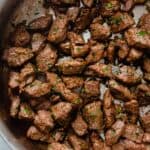 FINISH: Remove the steak bites to a plate; keep warm. Lower the heat to medium, add the butter to the pan, and allow it to melt. Add garlic to the skillet and cook until fragrant, about 30 seconds. Add the steak bites back to the skillet and toss in the garlic butter. Sprinkle with parsley and serve immediately!