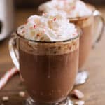 Cozy, warm, and comforting. My peppermint hot chocolate is made in the slow cooker and flavored with peppermint candy canes. A perfect treat for winter!