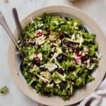 The quickest everyday kale crunch salad! It takes 5 minutes to throw this quick kale salad together! It’s the perfect salad to serve with seared salmon, grilled chicken, and pretty much anything else. The dijon apple cider vinaigrette makes it tastes just like Chick-fil-A version of the kale crunch salad!