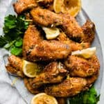 TOSS: When the wings are done, transfer them to a large bowl, pour the prepared sauce over the wings and toss to coat. Then add the lemon zest and toss again to coat the wings evenly. Sprinkle with parsley, if desired, plate and serve warm!