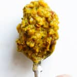 CURRY PASTE: Remove the roasted garlic cloves from the peel and place them in the food processor along with the roasted shallots, chilis, ginger paste, lemongrass paste, cilantro, roasted coriander seeds, curry powder, turmeric, cinnamon powder, brown sugar, and the zest of a lime. Pulse the mixture until it reaches a chunky sauce-like consistency.