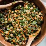 Color, texture, and crunch! This Moroccan-inspired chickpea quinoa salad has it all! We’re using carrots, fresh parsley, medjool dates, and golden raisins to make this salad extra special. Serve as a main course or as a side!
