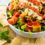An easy, delicious taco salad that takes just 20 minutes and is a classic! It's a hearty salad loaded with fresh, creamy avocados, healthy black beans, lean ground beef, lots of crispy romaine lettuce, and a healthy serving of cheddar cheese.Taco salads are perfect for summer barbecues and picnics!