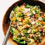 Keyword: asian chicken salad, asian salad, cabbage mix, chicken pasta salad, chopped chicken, chow mein noodles, cilantro, garlic, ginger, ginger dressing, grilled chicken, romaine mix, scallions, sesame ginger dressing, sesame seeds, sliced almonds, soy sauce, sugar, toasted sesame oil