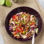 For the dressing: In a medium bowl, combine the peanut butter, rice vinegar, sesame oil, lime juice, soy sauce, canola oil, sugar and honey and whisk until smooth. Add the red pepper flakes, garlic, ginger, cilantro, and sesame seeds and mix until combined. Alternately, you can combine all ingredients in a blender and process until completely smooth. Let dressing rest for 10 minutes before tossing with salad.